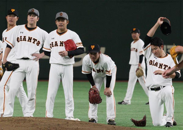 巨人の投手陣(右が菅野)/(C)日刊ゲンダイ