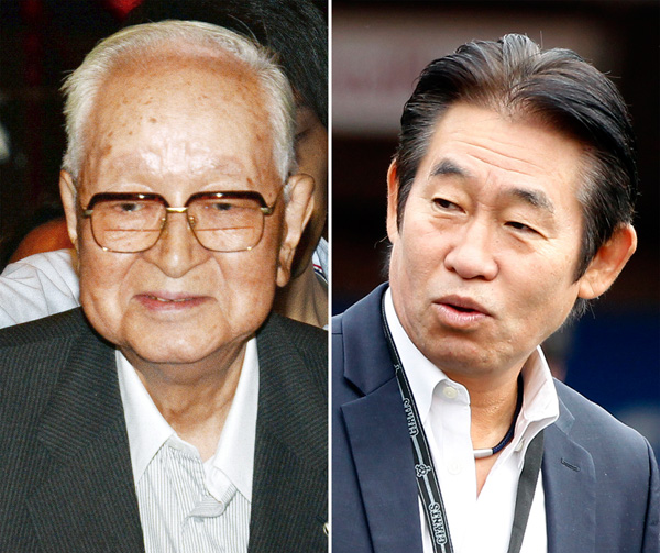 巨人の“ドン”渡辺恒雄氏(左)と鹿取義隆氏(C)日刊ゲンダイ