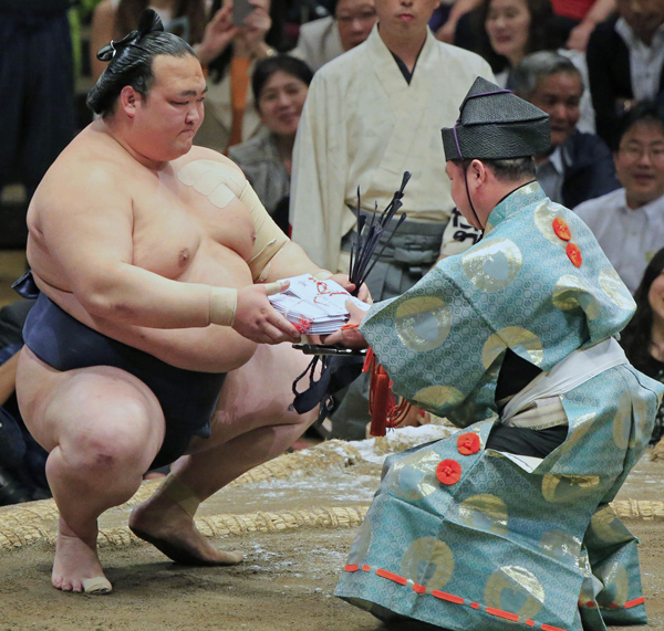 この日の懸賞金は連敗を免れた稀勢の里のものに(C)日刊ゲンダイ