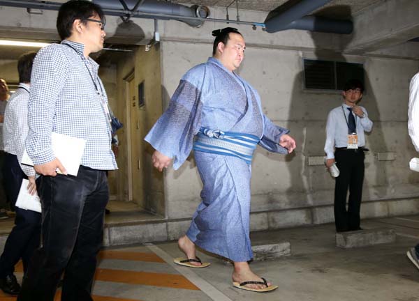重い足取りで国技館を出る稀勢の里(C)日刊ゲンダイ