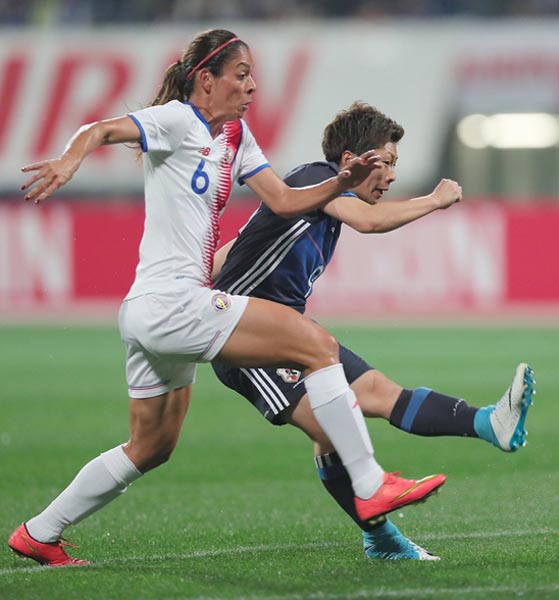 コスタリカ戦でシュートを放つ横山久美 (C)Norio ROKUKAWA/Office La Strada