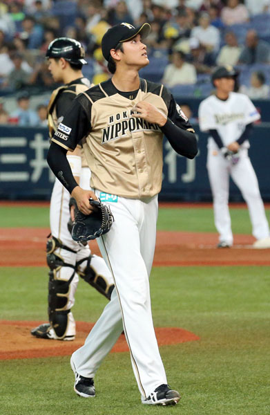 二回1死満塁で押し出し四球を与えて降板する大谷(C)日刊ゲンダイ