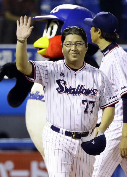 サヨナラ勝ちし、スタンドに手を振る真中監督(C)日刊ゲンダイ