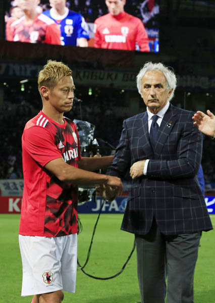 ハリルホジッチ監督は本田を「存在自体が重要」と褒めちぎるが…(C)日刊ゲンダイ