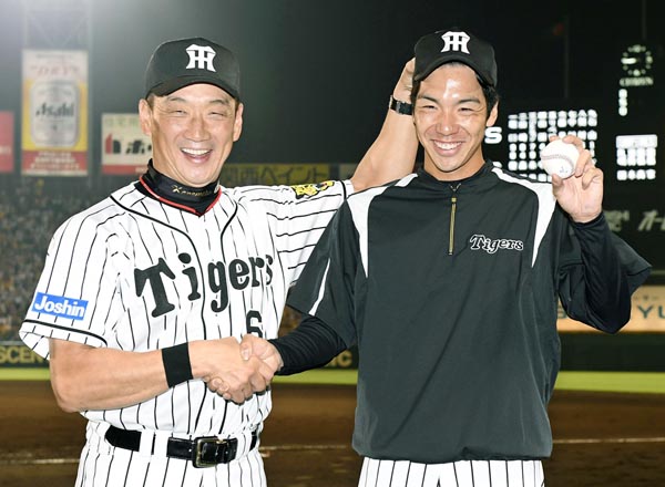 金本監督(左)を大喜びさせた小野(C)共同通信社