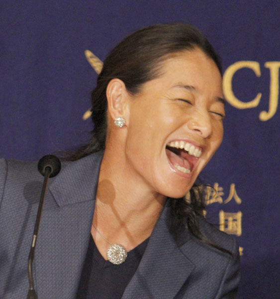 伊達公子は会見で何度も笑顔を見せた(C)日刊ゲンダイ