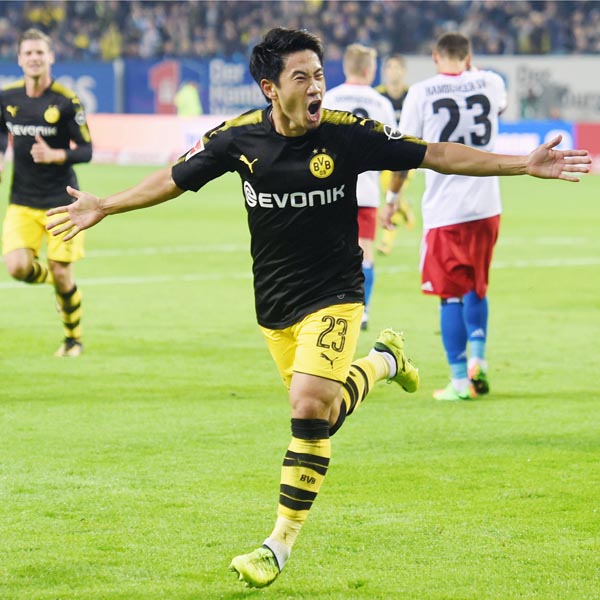 ハンブルガー戦で今季初ゴールの香川(C)ロイター=共同