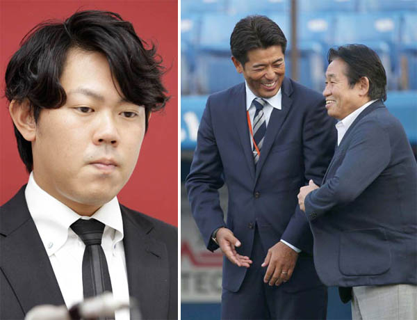 (左から)巨人・山口、侍ジャパン稲葉監督と鹿取GM(C)日刊ゲンダイ
