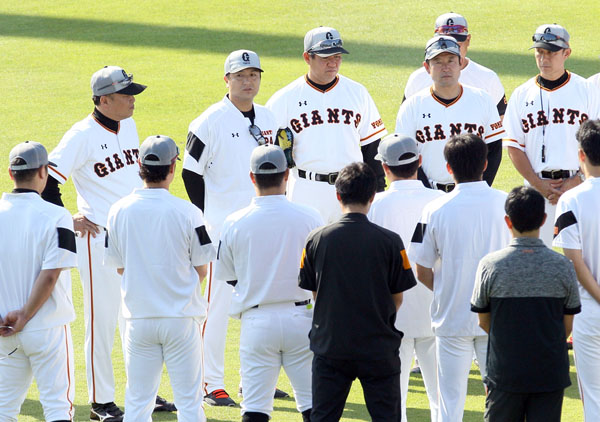 左奥から村田ヘッド、高橋監督ら巨人スタッフ(C)日刊ゲンダイ