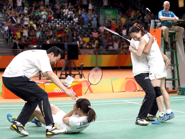 ’16リオ五輪で優勝が決まり、倒れ込む高橋に駆け寄る朴監督(左)/(C)日刊ゲンダイ