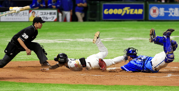 日本シリーズではこのプレーで5分以上中断(C)日刊ゲンダイ