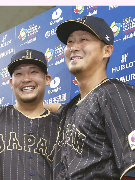 WBCオーストラリア代表戦後ヒーローインタビューを受ける筒香と中田(C)日刊ゲンダイ