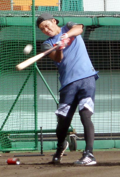 打撃練習を行う坂本(C)共同通信社