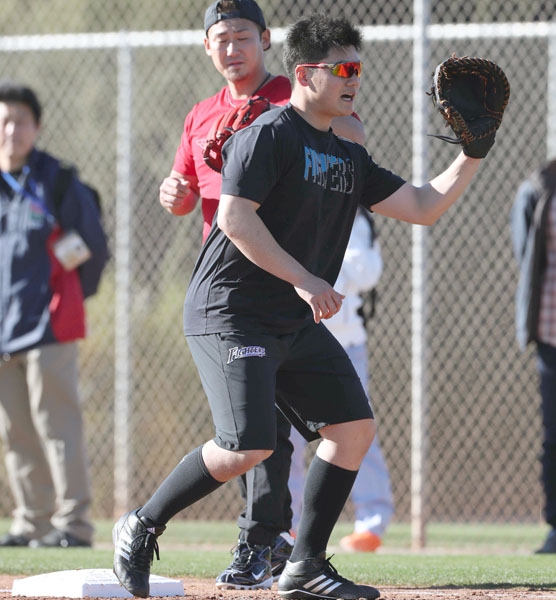 アリゾナで中田翔と守備練習をする清宮(C)日刊ゲンダイ/石井俊平