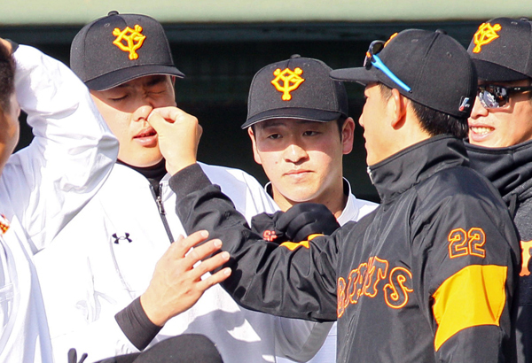 巨人キャンプ2日目の珍事 小林が岡本の鼻毛を“ブチッ!”