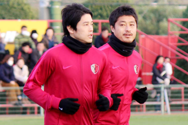 ランニングする内田とMF小笠原(右)/(C)共同通信社