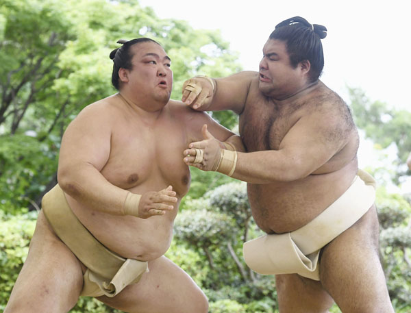 稽古相手はお互いのみ(左が稀勢の里)/(C)共同通信社