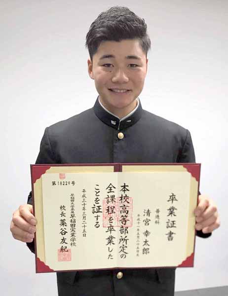 最後の学ラン姿で 日ハム清宮が早稲田実業の卒業式に出席