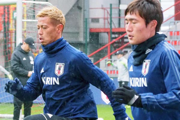 ランニングするFW本田圭佑(左)/(C)六川亨