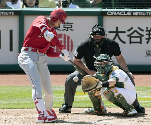 メジャー初安打を放った大谷(C)共同通信社
