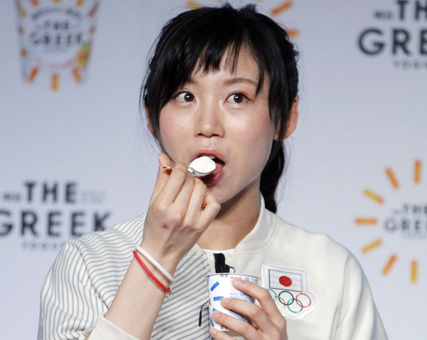 ヨーグルトの試食では「食リポ」も披露/(C)日刊ゲンダイ