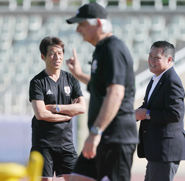 ドタバタ劇を演じた面々…(右から)田嶋会長、ハリルホジッチ前監督、西野朗氏(C)Norio ROKUKAWA/Office La Stradada