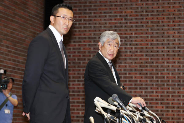 23日の会見での内田前監督(右)と井上コーチ/(C)日刊ゲンダイ