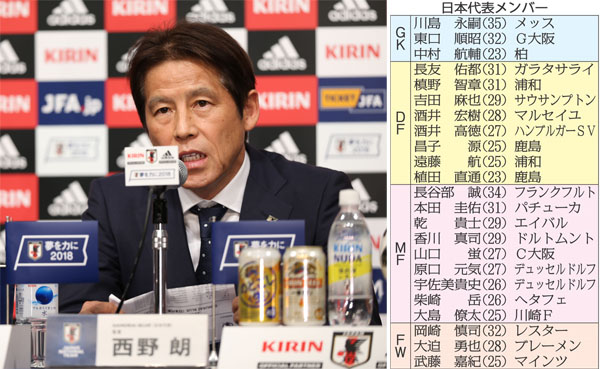 W杯最終登録メンバー23人を発表する西野監督(C)日刊ゲンダイ