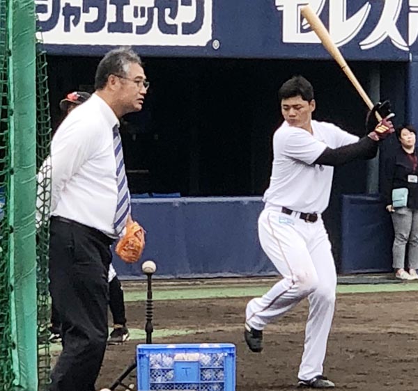 木田GM補佐が見守る中で打撃練習する清宮(C)日刊ゲンダイ
