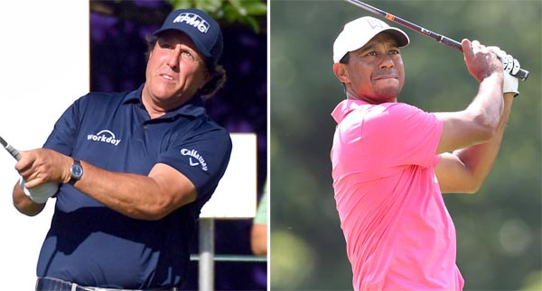 キャリアグランドスラムがかかるミケルソンと10年ぶり本大会4勝目を狙うウッズ(C)ロイター/USA TODAY Sports