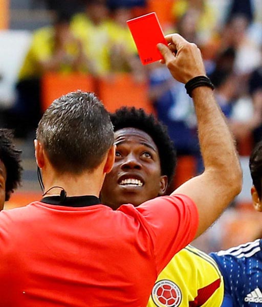 開始3分で姿を消したコロンビアのC・サンチェス(C)ロイター