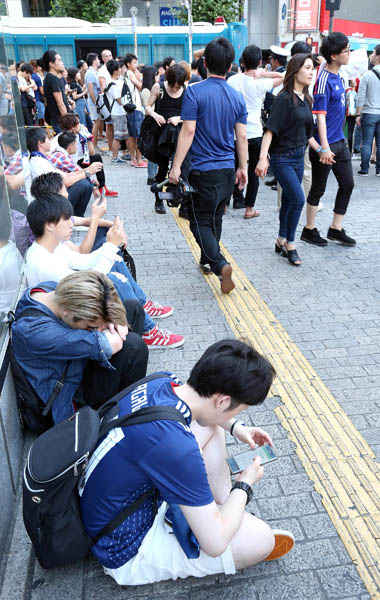 ベルギー戦敗退直後の渋谷 路上にへたり込むサポーターも