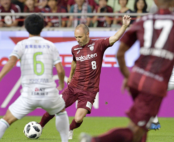 大歓声の中でプレーするイニエスタ(C)共同通信社