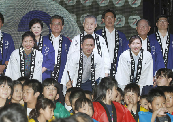 24日に行われた五輪カウントイベント(中央が森組織委員長)/(C)日刊ゲンダイ