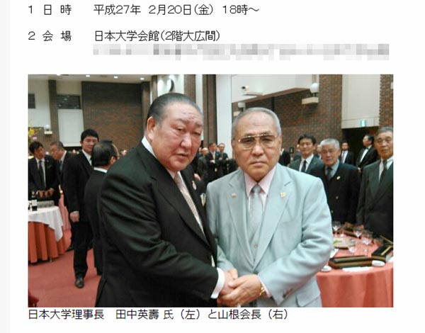 日大の田中理事長(左)と山根会長(日本ボクシング連盟ブログから)