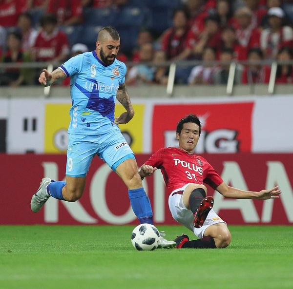 浦和DF岩波(右)をかわす長崎FWファンマ(C)Norio ROKUKAWA/office La Strada
