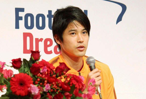 復帰会見での内田篤人(C)共同通信社