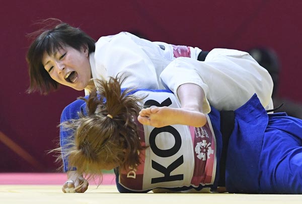 決勝は朴多率(韓国)に一本勝ち(C)共同通信社
