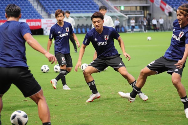 前日練習でボール回しに汗を流すMF堂安(C)Norio ROKUKAWA/office La Strada