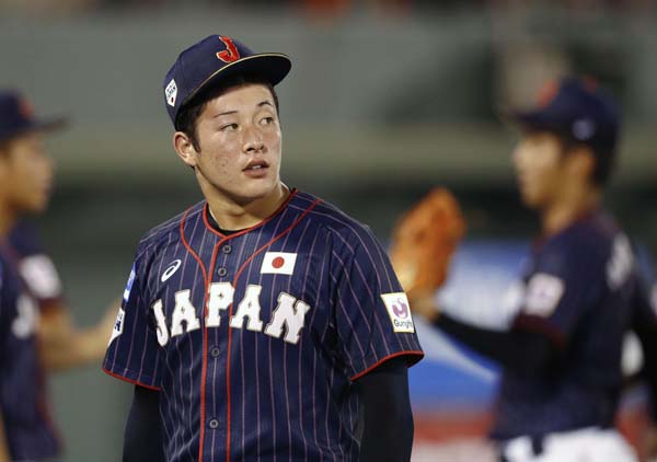 台湾戦の4回、2点を失いベンチに戻る吉田(C)共同通信社