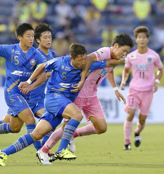 町田・深津(中央左)と競り合う栃木・上形(同右)/(C)共同通信社