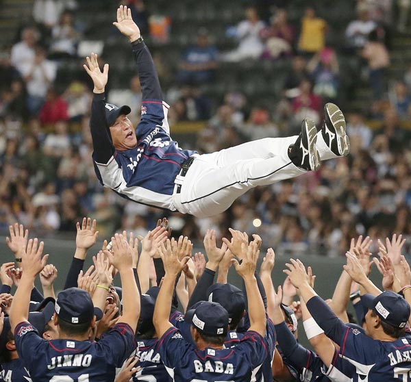 宙を舞う辻監督(C)共同通信社