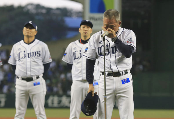 ソフトバンクに敗れセレモニーで号泣する辻監督(C)日刊ゲンダイ