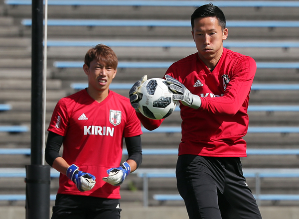 代表合宿でトレーニング中のGKシュミット・ダニエル(左はGK東口)/(C)Norio ROKUKAWA/office La Strada
