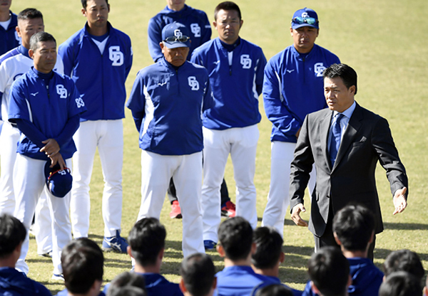 秋季キャンプに合流した中日の与田新監督(C)共同通信社