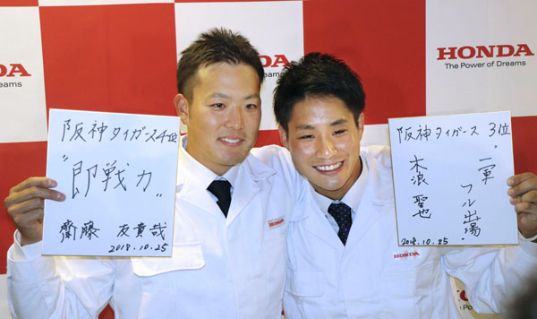 同期の木浪(3位)とともに阪神へ(C)共同通信社