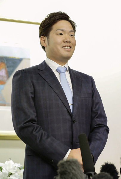 阪神入りを決めた西(C)共同通信社