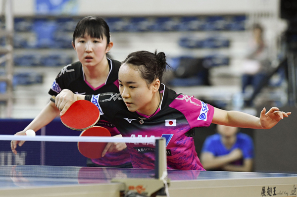 決勝進出を決めた早田(左)、伊藤組(C)共同通信社