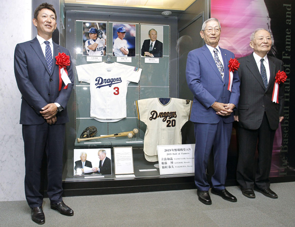 殿堂入りが決まった3氏(左から立浪氏、権藤氏、脇村氏)(C)共同通信社
