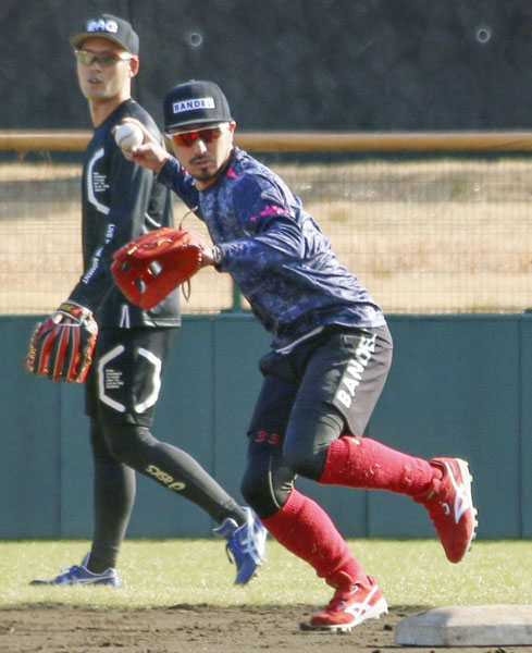 自主トレで汗を流す菊池涼介(C)共同通信社